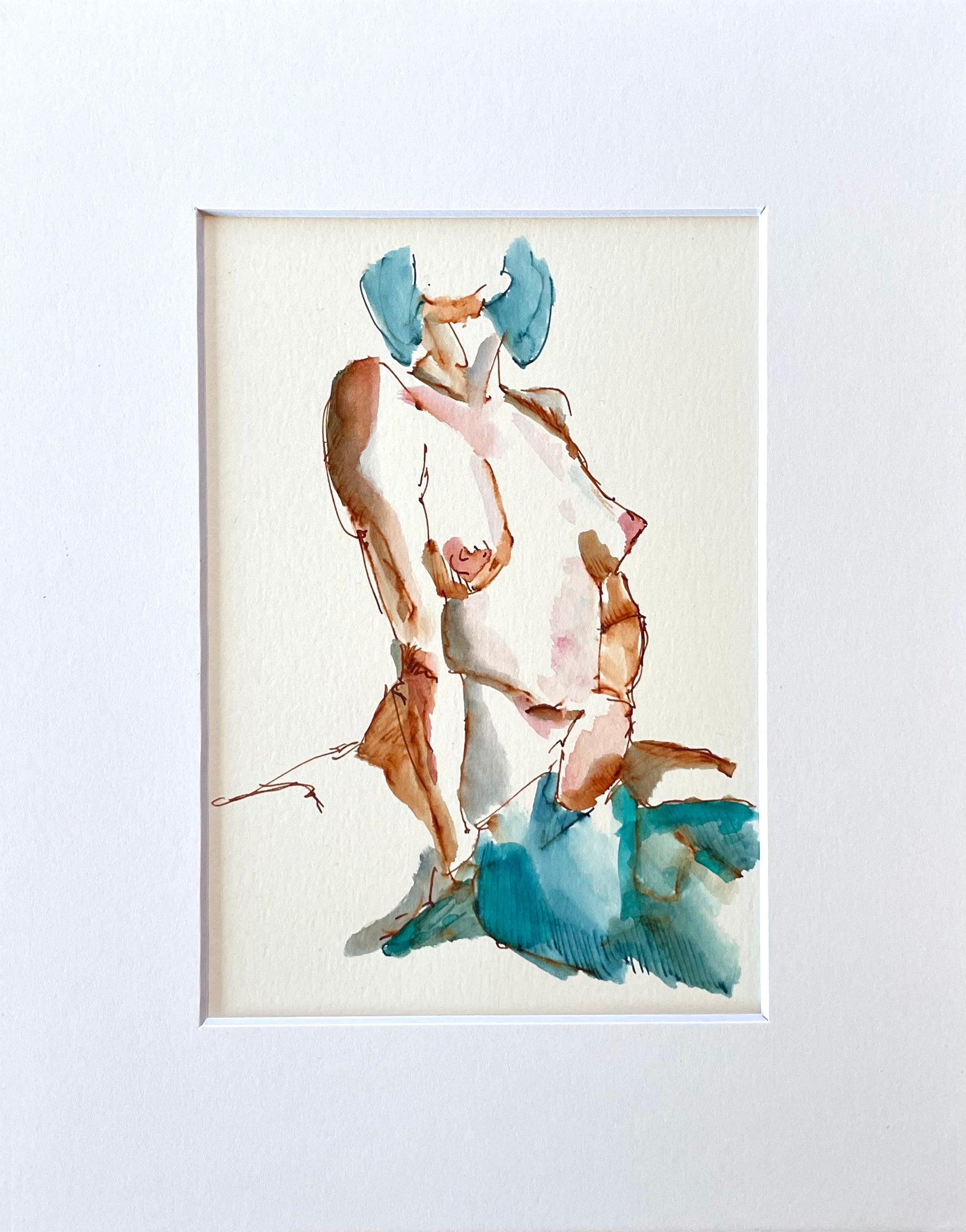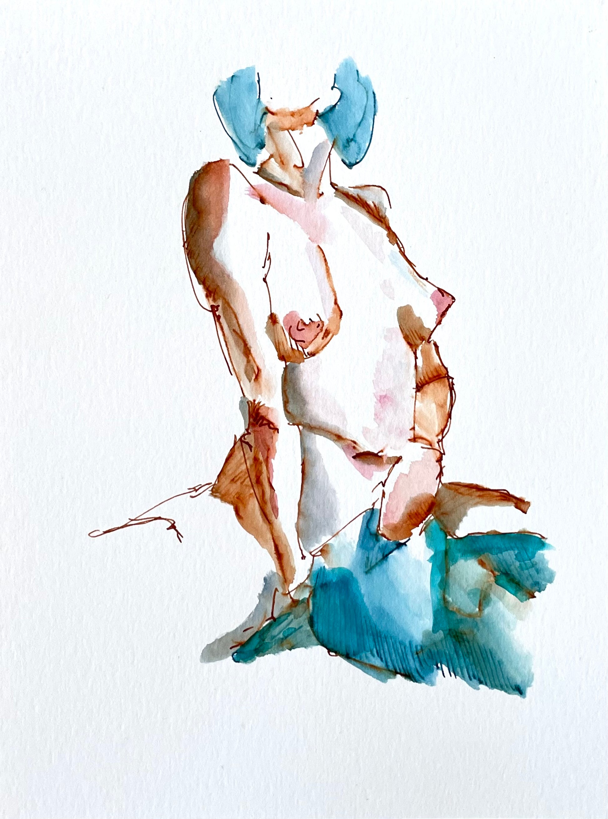 Original signed ink & watercolor figure study