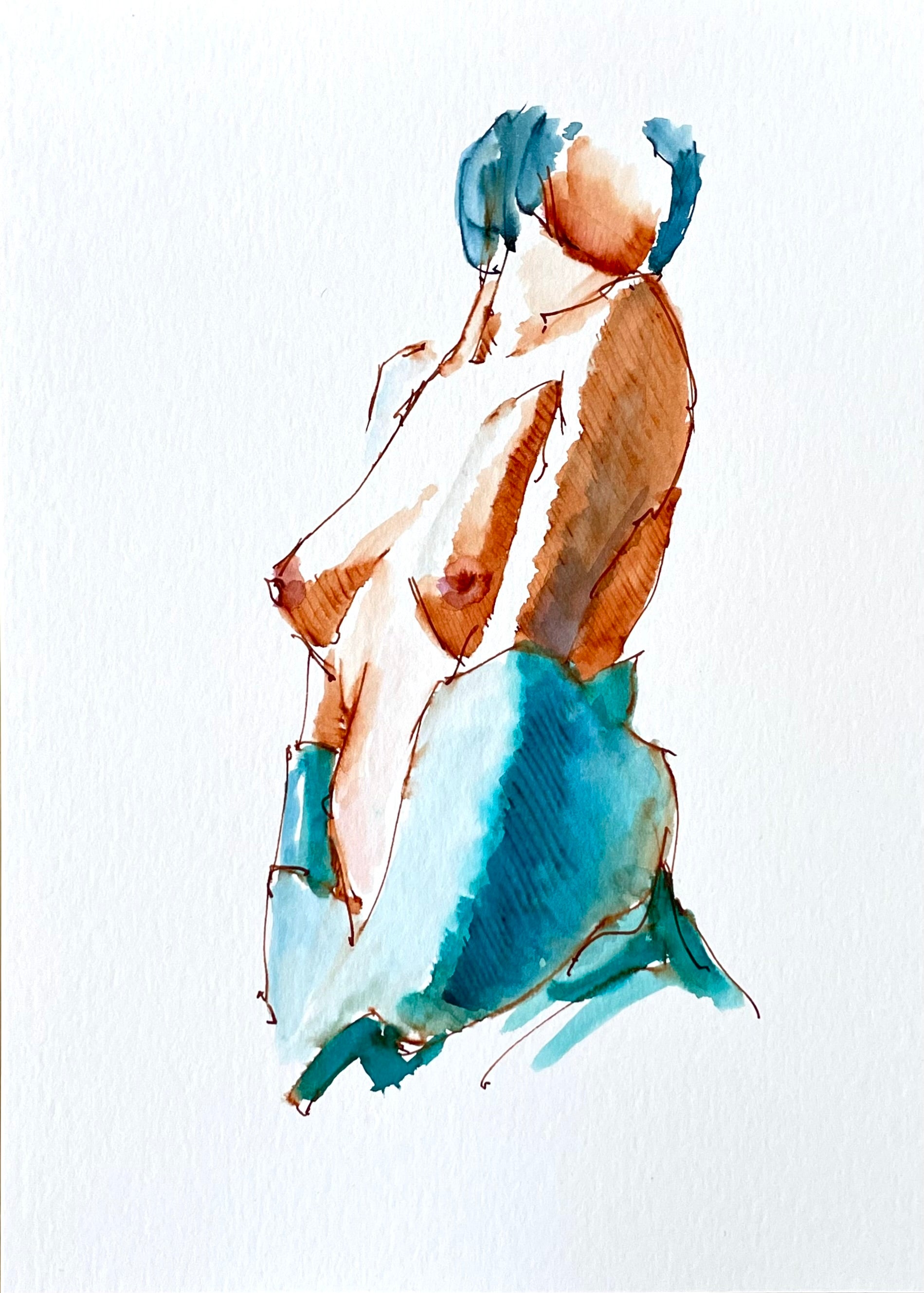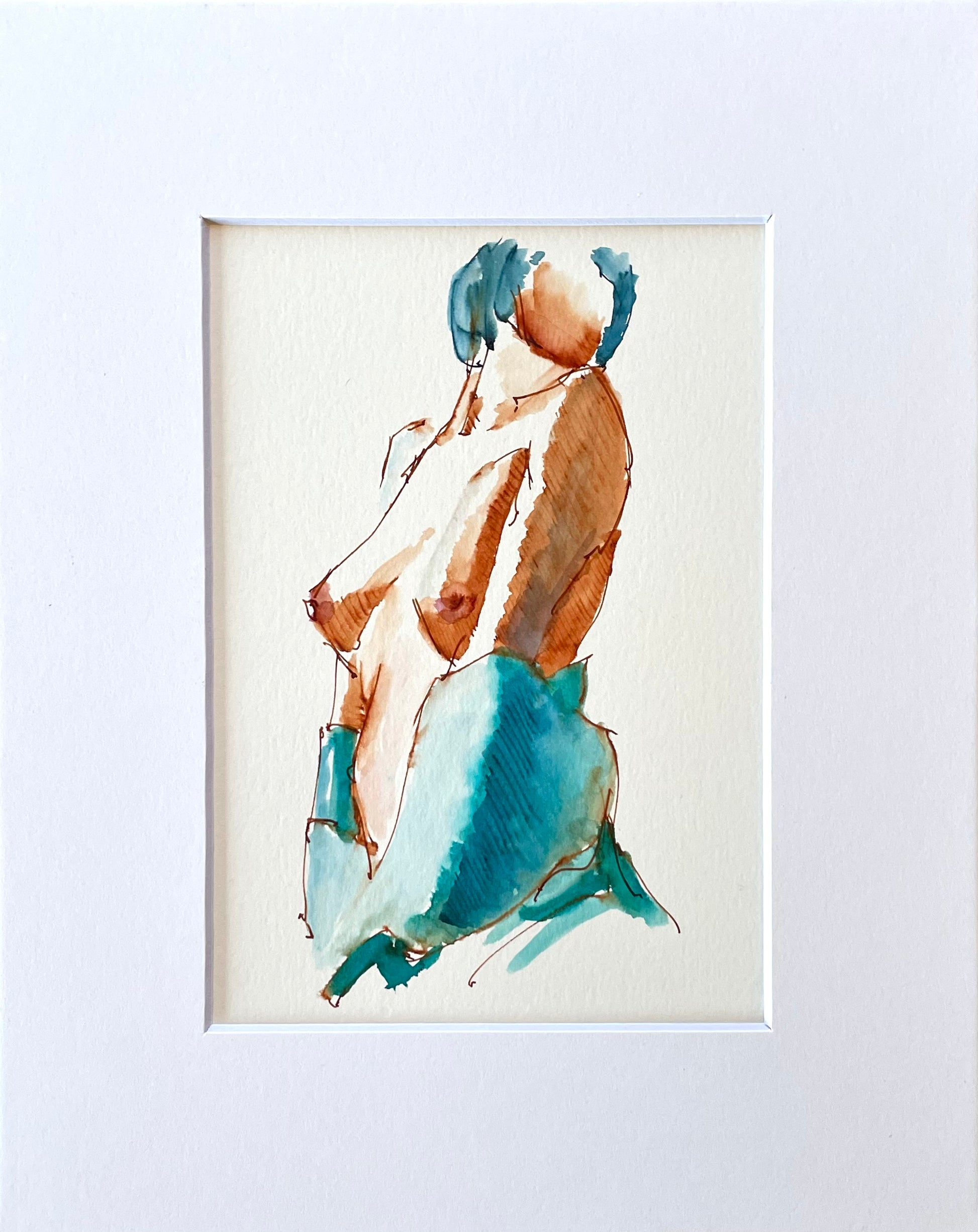 Original signed ink & watercolor figure study